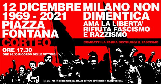 Domenica 12 dicembre cade il 52° anniversario della strage di Stato per mano fascista, alla Banca Nazionale dell'Agricoltura in Piazza Fontana. Associazioni, realtà di movimento, collettivi studenteschi, organizzazioni politiche e sindacali, saranno in piazza per un corteo che attraverserà la città.