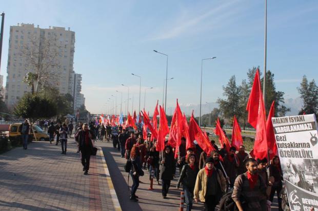 Giovedì 6 febbraio si è aperto nella città mediterranea di Antalya, nel sud della Turchia, il caso giudiziario che coinvolge Mustafa Cihan Yilmaz, un membro del Partito rivoluzionario dei Lavoratori (DIP). Il nostro compagno Cihan è stato processato insieme a diversi membri dell'Organizzazione dei giovani socialisti, vicino a un'altra tendenza all'interno del movimento comunista, per la loro partecipazione alle manifestazioni di Antalya nel corso della rivolta popolare in Turchia la scorsa estate, meglio conosciute sotto il nome di Gezi Park. Cihan e due dei suoi co-accusati sono stati tenuti in carcere in attesa del processo per quattro mesi. Al termine di questa prima sessione, il tribunale ha rilasciato Cihan e gli altri due. Non solo, ma l'intero modo in cui si è svolta la prima sessione, è stato un trionfo per la rivolta popolare e una grande vittoria politica per il nostro partito.