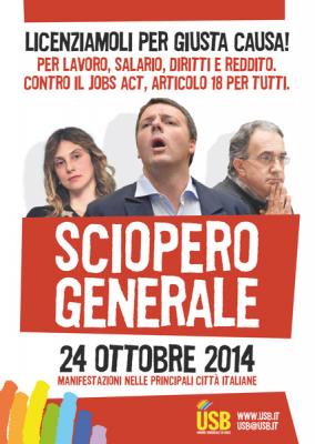 Il PCL sostiene le rivendicazioni dell'azione di sciopero intercategoriale promossa dal sindacato USB per il 24 ottobre, contro il governo Renzi, l'Unione europea, le politiche di austerità.