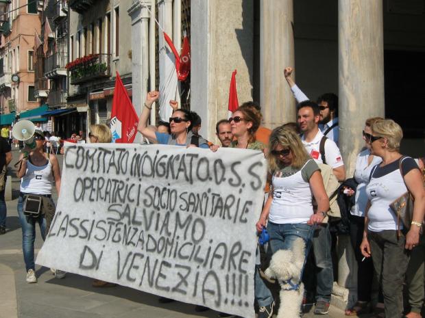 La sezione del PCL di Venezia ha partecipato con i propri militanti, le proprie bandiere e volantino alla manifestazione e al corteo organizzato dal comitato delle lavoratrici e lavoratori dell'assistenza domiciliare "INDIGNATO.O.SS", che si è dispiegato oggi per le calli di Venezia contro la farsa del varo del bilancio comunale lacrime e sangue ad opera del Commissario Zappalorto.