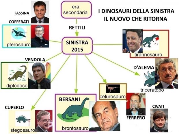 Ci sono poi i PD post PCI-PDS-DS della cosiddetta ditta che per anni sono stati gli alleati e compagni di merende di PRC-PdCI-SEL e dei personaggi sopra narrati. Si tratta dei Bersani, Cuperlo, Errani, D'Alema, ecc. Che costoro rappresentino un'alternativa di sinistra a Renzi pare una tragica commedia degli equivoci dove cause ed effetti si invertono, padri figli e mamme si confondono in sbiadite foto di famiglia. Gli stessi comportamenti parlamentari, in particolare su legge elettorale e riforme istituzionali, dimostrano la pochezza di questa “sinistra”, parola che a D'Alema procura forti eritemi curabili solo con la visione dei video dei bombardamenti su Belgrado lanciati dal suo governo nel 1999.