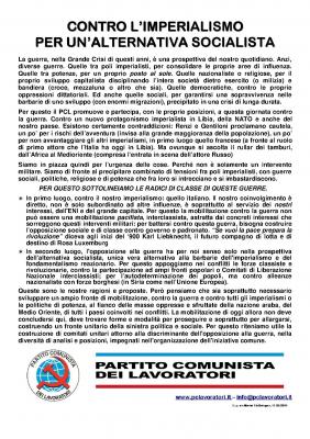 Volantino distribuito dal PCL alle manifestazioni contro la guerra del 12 marzo