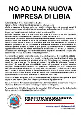 Il capitalismo francese ha giocato di anticipo mandando truppe a Bengasi a sostegno del generale Haftar, per mettere le mani sui giacimenti petroliferi della Cirenaica. Tutta la stampa italiana chiede a Renzi di intervenire per non farsi scavalcare dai francesi e difendere gli interessi dell'ENI. Renzi teme di perdere voti infilandosi in una avventura. Ma non vuole perdere la faccia agli occhi di quel grande capitale tricolore che si è candidato a rappresentare in Italia e nel mondo. Per questo si è assicurato, per decreto (10 febbraio), il controllo diretto delle truppe speciali tramite i servizi segreti: un decreto che assegna loro, testualmente, “licenza di uccidere e impunità per i reati”.