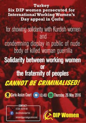 Sei donne, militanti del Partito Rivoluzionario dei Lavoratori (DIP) della Turchia, sono perseguitate per la loro attività in occasione dell'8 marzo. Sono ora sotto processo in tribunale per "sostegno e propaganda del terrorismo" semplicemente perché hanno espresso solidarietà con le donne curde sfacciatamente represse e umiliate dalle forze di sicurezza.