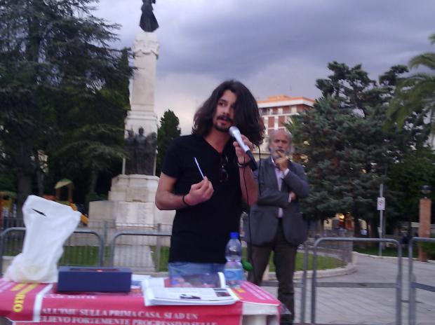 Dopo una breve introduzione del candidato Piero Quassia, ha preso la parola Claudio Campobasso, il giovanissimo candidato a sindaco per il Partito Comunista dei Lavoratori, che ha illustrato il programma per Triggiano.