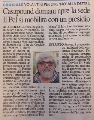 In occasione dell'apertura di una sede di Casapound, il Partito Comunista dei Lavoratori effettuerà un presidio con volantinaggio antifascista, al quale invitiamo tutte le sinistre a partecipare (in foto l'articolo dalla Nazione)