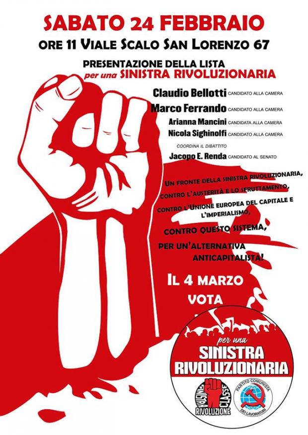 Sabato 24 febbraio assemblea pubblica di presentazione della lista a Roma