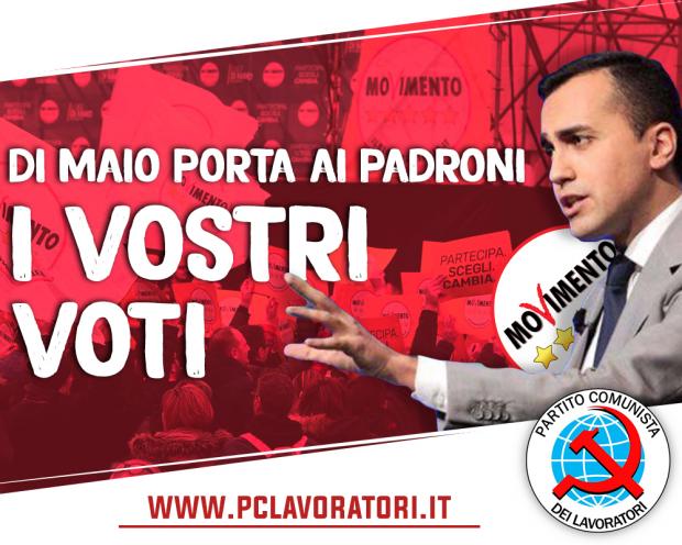 Ma due mesi dopo? Non si è ancora formato il governo, e di quelle false promesse non è rimasto nulla. Anzi, tutto appare capovolto. Di Maio è disposto ad allearsi con ogni partito della “casta” (dal xenofobo Salvini a Matteo Renzi) pur di guidare il governo. Il programma è stato riformulato (oltretutto in modo truffaldino) per rassicurare i poteri forti. E ora Confindustria, banchieri e giornali benedicono il M5S e chiedono al PD di sostenerlo, così come fanno l'Unione Europea e gli ambienti NATO. Insomma: tutti i vostri avversari di classe degli ultimi trent'anni, quelli che hanno riempito il proprio portafoglio svuotando il vostro, salgono sul carro del vincitore.