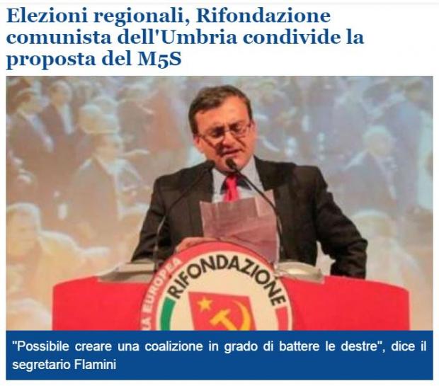 (1) Elezioni regionali, Rifondazione comunista dell'Umbria condivide la proposta del M5S