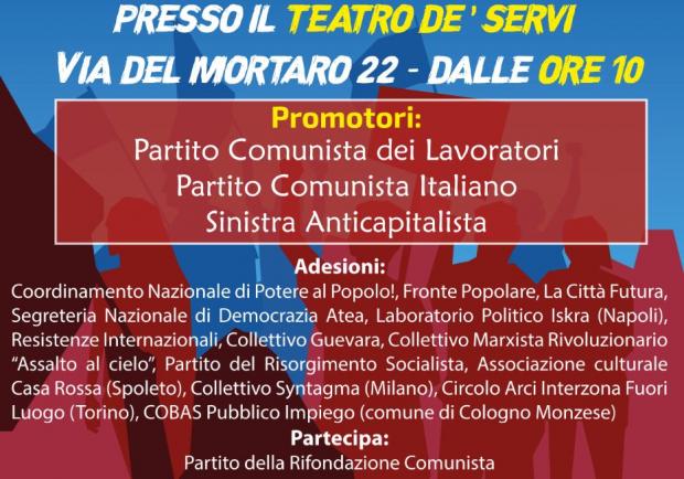 Dopo le importanti adesioni, nei giorni scorsi, di Potere al Popolo!, Fronte Popolare, La Città Futura, Democrazia Atea, Laboratorio Politico Iskra, e l'annuncio della partecipazione del Partito della Rifondazione Comunista, hanno comunicato la loro adesione all'iniziativa del 7 dicembre a Roma anche le seguenti organizzazioni:
