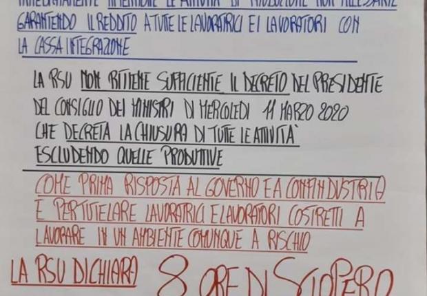 Non capitava da tempo che scioperi operai avessero un impatto politico diretto. Naturalmente è al momento solo un episodio. Naturalmente si è prodotto in un contesto politico eccezionale, segnato da un'emergenza pubblica senza precedenti nel dopoguerra italiano. Tuttavia è esattamente questa emergenza pubblica ad aver spinto in avanti gli scioperi. Questo è il punto. “Il coronavirus riscopre la lotta di classe” titola in prima pagina un organo di stampa borghese on line. L'articolista non avrebbe mai immaginato di dover ricorrere a quel titolo. Esso riflette, nel linguaggio borghese, la sorpresa generale. Gli operai? Nessuno li aveva considerati negli ultimi anni se non come oggetto statistico, o curiosità sociologica, o bacino elettorale. Neppure... le direzioni sindacali ne avevano avvertito la presenza, se non per qualche parata d'immagine a uso telecamere: al punto che la stessa apertura della stagione contrattuale per nove milioni di lavoratori nel solo settore privato è come fosse assente dallo scenario pubblico. Né scioperi, né manifestazioni, né nulla. Per quale ragione dunque avrebbe dovuto occuparsi degli operai il governo Conte, per di più nel momento del coronavirus? Il decreto ministeriale non li nomina neppure, dà per scontato che in fabbrica si continui a lavorare normalmente, perché così avviene ogni giorno, nella quiete generale. Del resto questa era stata la richiesta pubblica di Confindustria. Un governo padronale non poteva fare altrimenti.