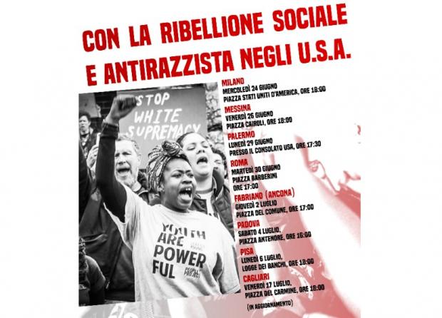 Proponiamo presidi unitari presso l'ambasciata e i consolati USA nel corso di questa e della prossima settimana a sostegno di Black Lives Matter e della mobilitazione in corso negli Stati Uniti.