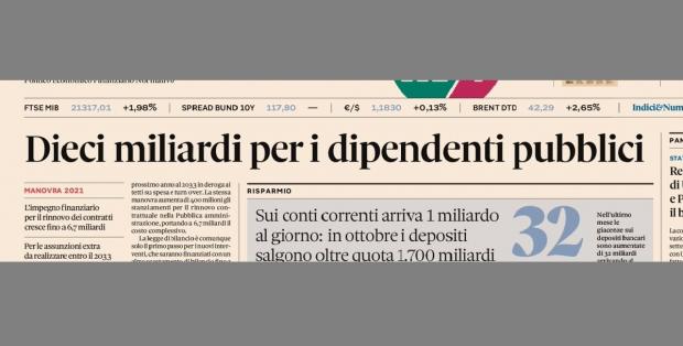 «Dieci miliardi per i dipendenti pubblici» titola con tono scandalizzato il quotidiano di Confindustria (17 novembre) per commentare l'annunciata legge di bilancio. È un falso, che serve a nascondere altro.