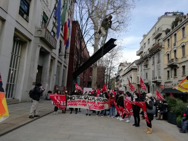 Venerdì 15 gennaio 2021 si è tenuto un presidio davanti alla prefettura di Milano per quanto riguarda la vertenza dei lavoratori e delle lavoratrici dell'Hotel Gallia.