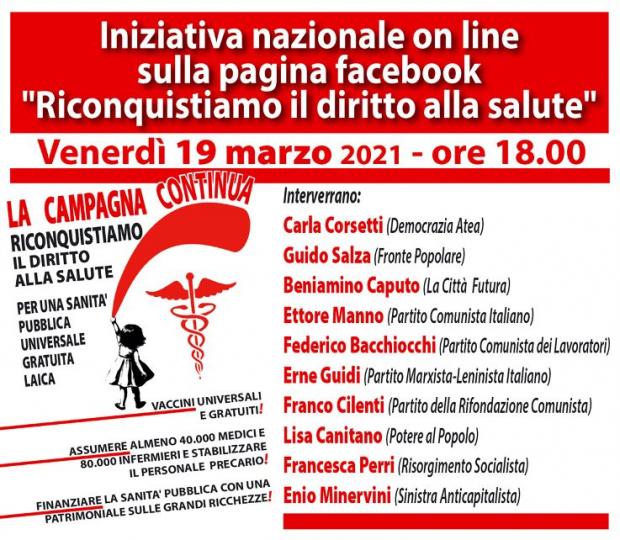 Appuntamento sulla pagina Facebook "Riconquistiamo il diritto alla salute" venerdì 19 marzo.