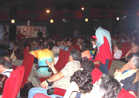 Ferrando è dunque la guida. L´uomo ha la barba come Karl Marx e anche i suoi tratti somatici lo rendono felice. In qualche misura somiglia al Capo. Nella penombra della multisala lui (Ferrando) si è però notato poco. Più ossessiva l´aria pregna del fritto da pop corn, un´americanata che i comunisti marxisti non avevano previsto. In cinquecento si sono ritrovati infatti nella sala insonorizzata, e già molto chic. Senza soldi e senza neanche la colonna sonora, hanno intonato l´Internazionale portandola fino alle estreme conseguenze, concludendo con l´ultima strofa il rito dei pugni chiusi. Felici, già parecchio incavolati ma strasicuri. Un delegato di Bologna: «Forse oggi la rivoluzione inizia».