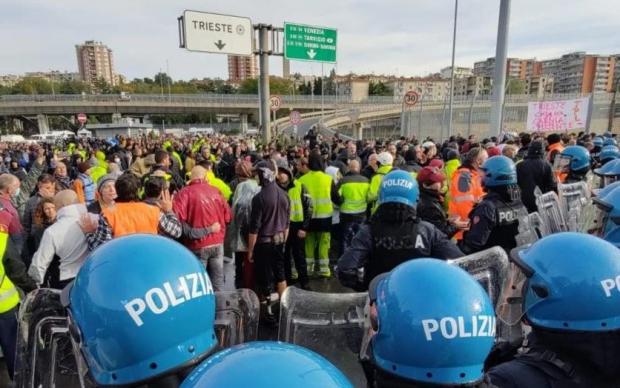 La polizia ha sgombrato questo presidio, sotto la pressione dell'Autorità portuale, dei terminalisti ed armatori preoccupati dei propri affari, ma anche di un governo e di una ministra degli interni Lamorgese che dovevano mostrare il pugno duro per riabilitare la propria immagine dopo la copertura fornita ai fascisti nell'attacco alla sede della CGIL. La piazza di Trieste si prestava alla perfezione per l'occasione, per inaugurare una gestione più muscolare delle manifestazioni di piazza, rodando strumenti e forme d'intervento utili per il futuro. Forme d'intervento peraltro già praticate con determinazione e violenza bel superiori contro i picchetti degli operai immigrati della logistica, per fare solo un esempio.