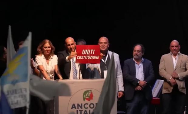 Ancora Italia, l'organizzazione più robusta della compagnia, si presenta come il partito dell'«Interesse Nazionale» (tutto maiuscolo), rivendica lo «Stato patriottico come fortilizio», la «famiglia contro l'atomizzazione individualista», la «Lealtà e l'Onore contro l'impero dell'effimero», «una visione spirituale intesa quale religione della trascendenza in opposizione all'ateismo nichilistico della merce... una visione sacra del mondo e della vita... la bellezza, l'onore il coraggio... quali principi guida di ogni azione individuale e collettiva».