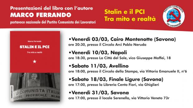 Gli appuntamenti del mese di marzo sono in Campania e Liguria: a Cairo Montenotte (Savona), Napoli, Avellino, Finale Ligure e Savona. Parteciperà l'autore, Marco Ferrando, portavoce nazionale del PCL.