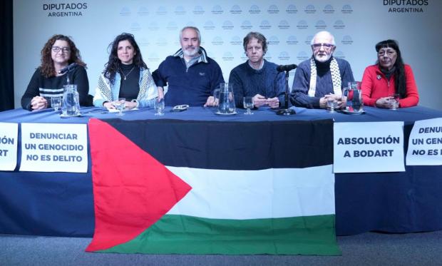 In vista di una nuova seduta del tribunale per l'appello presentato contro la sentenza che intende condannare Alejandro Bodart per aver espresso solidarietà alla causa palestinese e denunciato il genocidio in corso perpetrato dallo Stato di Israele, lunedì 23 si è tenuta un'udienza pubblica presso il Congresso Nazionale. Tra gli altri, hanno partecipato gli avvocati difensori di Bodart, María del Carmen Verdú e Ismael Jalil, insieme a deputati nazionali, organizzazioni per i diritti umani, organizzazioni sociali, politiche, ambientali, rappresentanti della comunità araba ed ebraica.