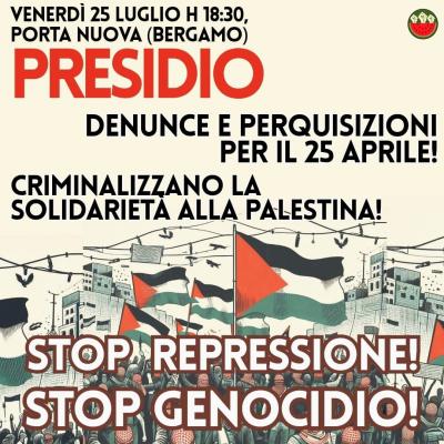 È da poco giunta la notizia che alcuni nostri compagni, militanti nella rete Bergamo-Palestina (coordinamento locale di varie realtà a cui partecipa anche il nucleo del PCL di Bergamo), sono stati perquisiti dalle forze dell’ordine e hanno subito il sequestro dei loro dispositivi elettronici.