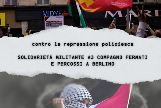 In diversi punti la polizia ha attaccato il corteo con grande violenza, disperdendolo prima che raggiungesse il suo punto di arrivo. 57 persone sono state arrestate. Perché? Perché si erano schierate per una Palestina libera. Come al solito, la polizia ha reagito con estrema brutalità contro i manifestanti, come documentano ancora una volta numerosi video. Mentre la criminalizzazione della solidarietà con la Palestina è diventata un marchio di fabbrica della “democrazia” tedesca, i poliziotti, in linea con la Coalizione, a livello cittadino e federale, prendono a calci e pugni persone indifese, già a terra.